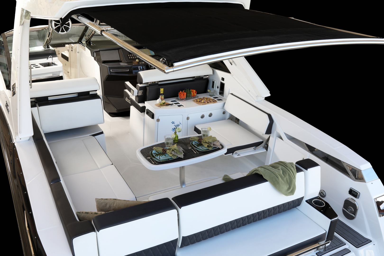 Unparalleled performance defines the 385SS but not at the expense of luxury and comfort. Above deck, you’ll find a vast, wide-open layout with a large cockpit and bow seating area as well as masterfully laid out helm station. Below deck, you’ll find a luxuriously appointed cabin awaits you making overnight entertaining and relaxation everything you could ever desire.