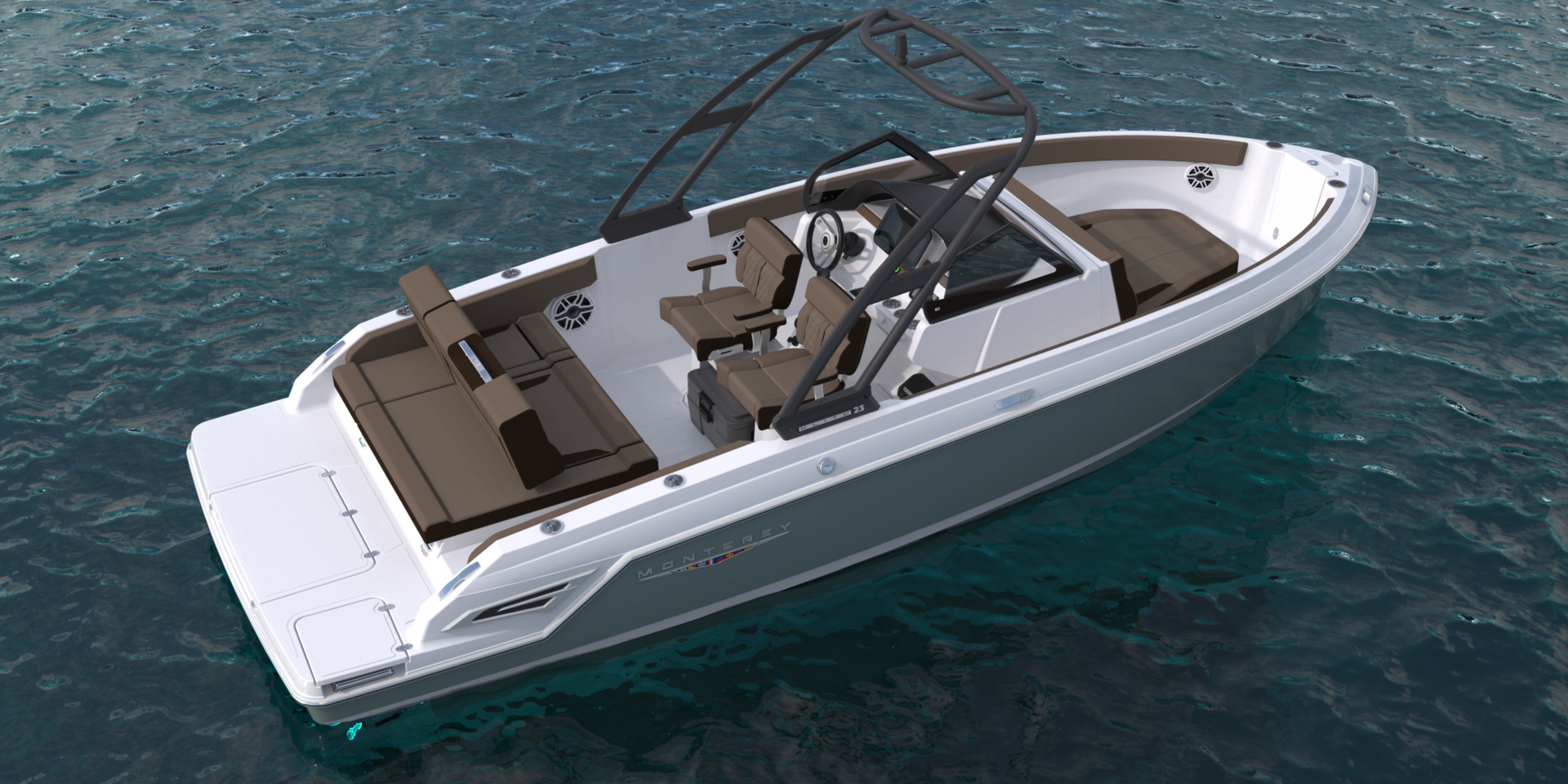 The Elite 23 brings Monterey’s award-winning Elite Series into the 23-foot class, delivering premium design, confident performance, and refined versatility. Built on the same engineering and craftsmanship that define the Elite lineup, the 23 offers a spacious layout, driver-focused helm, and upscale finishes throughout.