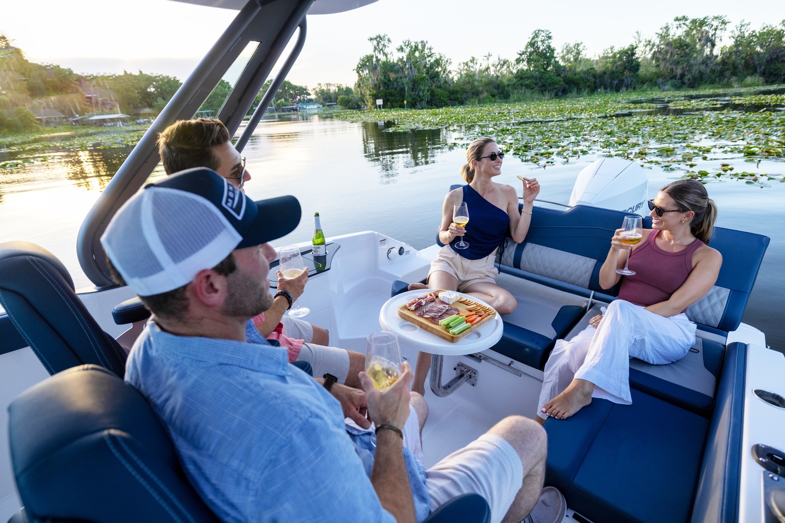 The Monterey Elite 25 OB blends luxury and performance in a sleek, single-outboard design. Built for comfort and entertaining, it features spacious seating, a fiberglass hardtop, ample storage, and a wet bar. Powered by a single engine delivering up to 350 HP, and riding on Monterey’s VST hull, it offers a smooth, confident ride ideal for coastal cruising in true Monterey style.
