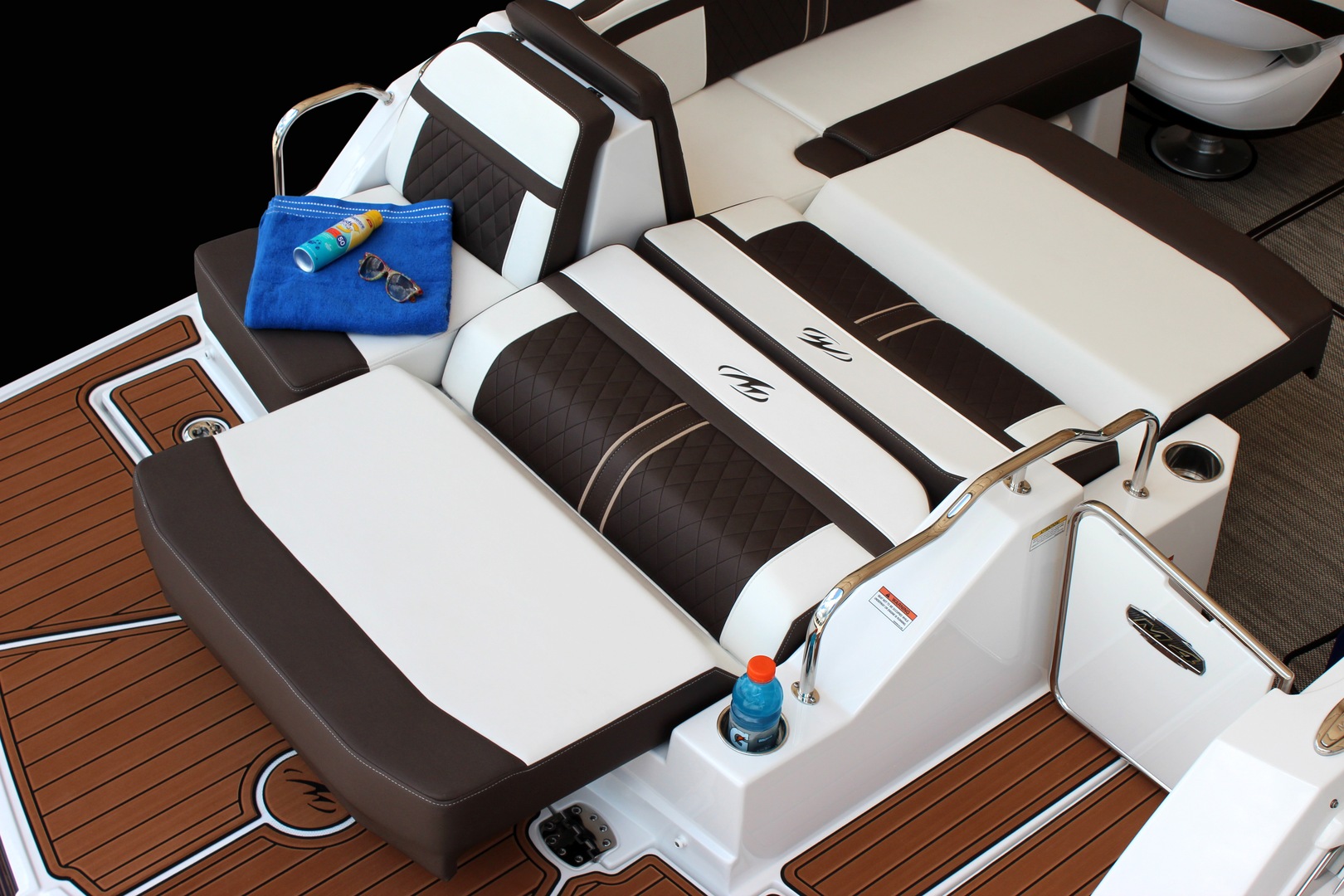 Nimble and Sporty best describes the Monterey M4. Featuring a standard wetbar sized just right for preparing a drink, or a quick snack, spacious seating, and generous dedicated storage areas, the M4 is ahead of the curve. Additional standard features include a stainless steel telescopic boarding ladder for easy access in an out of the water, a small head compartment which is located behind the port side dash, and a fusion satellite ready stereo.